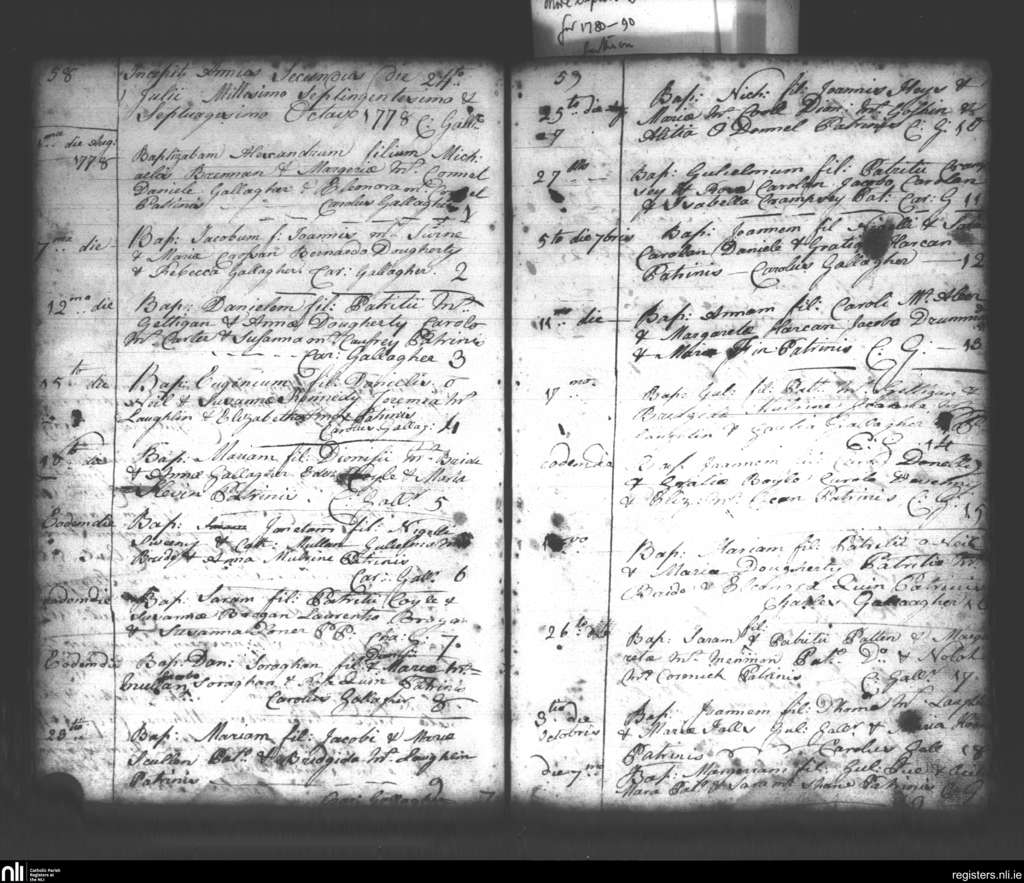 Clonleigh; County of Tyrone, Donegal; Diocese of Derry. Baptisms, Aug. 1778 to Oct. 1778