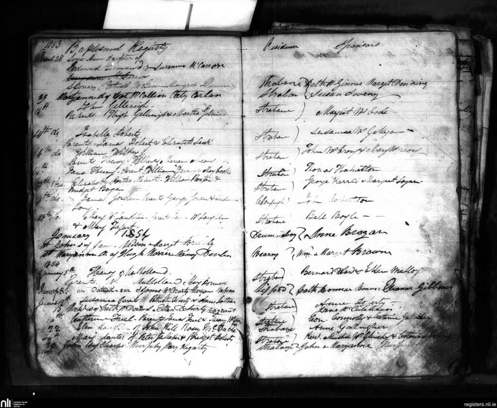 Clonleigh; County of Donegal, Tyrone; Diocese of Derry. Baptisms, Nov. 1853 to Feb. 1854