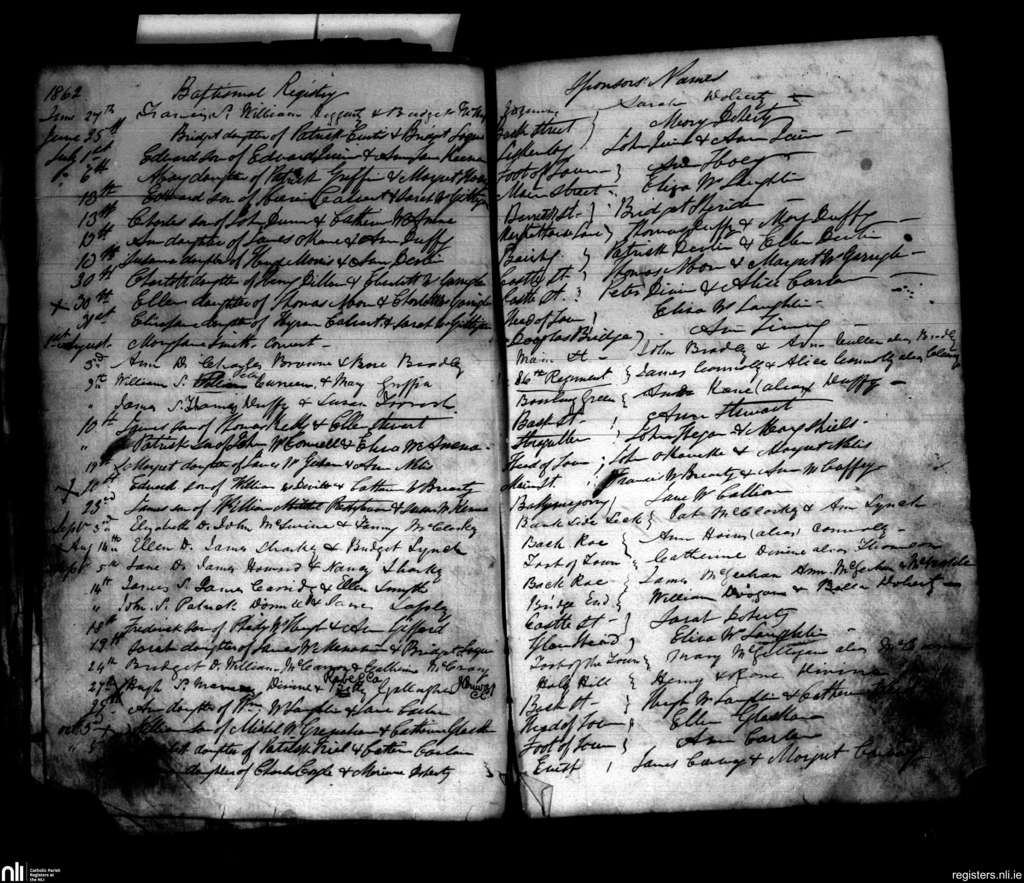 Clonleigh; County of Donegal, Tyrone; Diocese of Derry. Baptisms, June 1862 to Oct. 1862