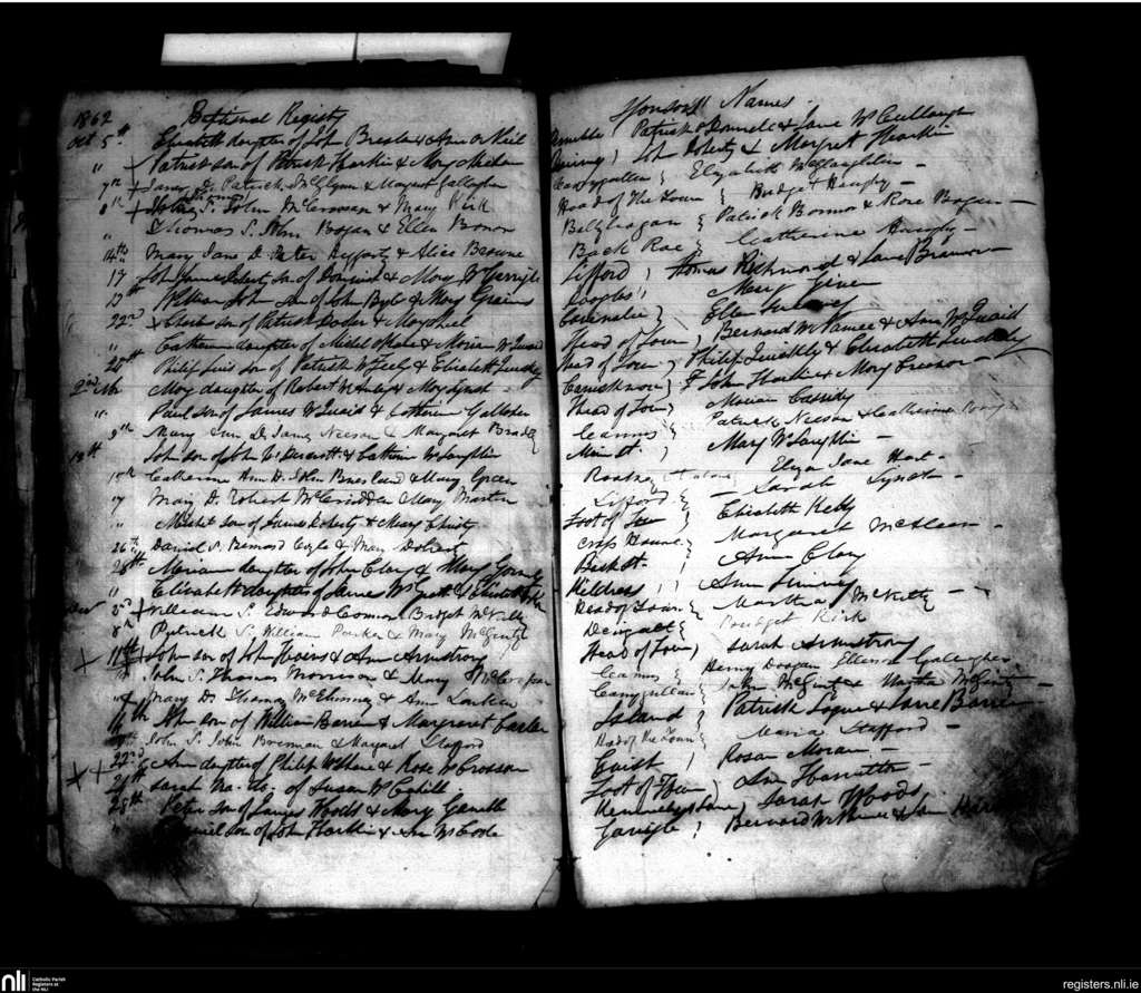 Clonleigh; County of Donegal, Tyrone; Diocese of Derry. Baptisms, Oct. 1862 to Dec. 1862