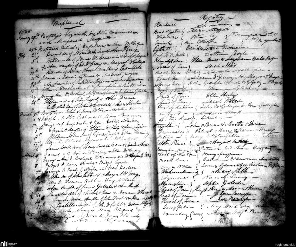 Clonleigh; County of Donegal, Tyrone; Diocese of Derry. Baptisms, Jan. 1865 to May 1865