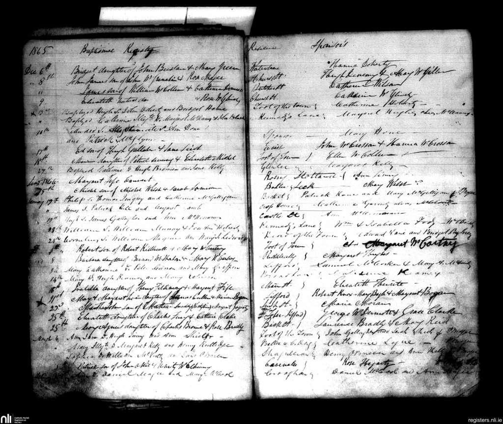 Clonleigh; County of Donegal, Tyrone; Diocese of Derry. Baptisms, Dec. 1865 to Mar. 1866
