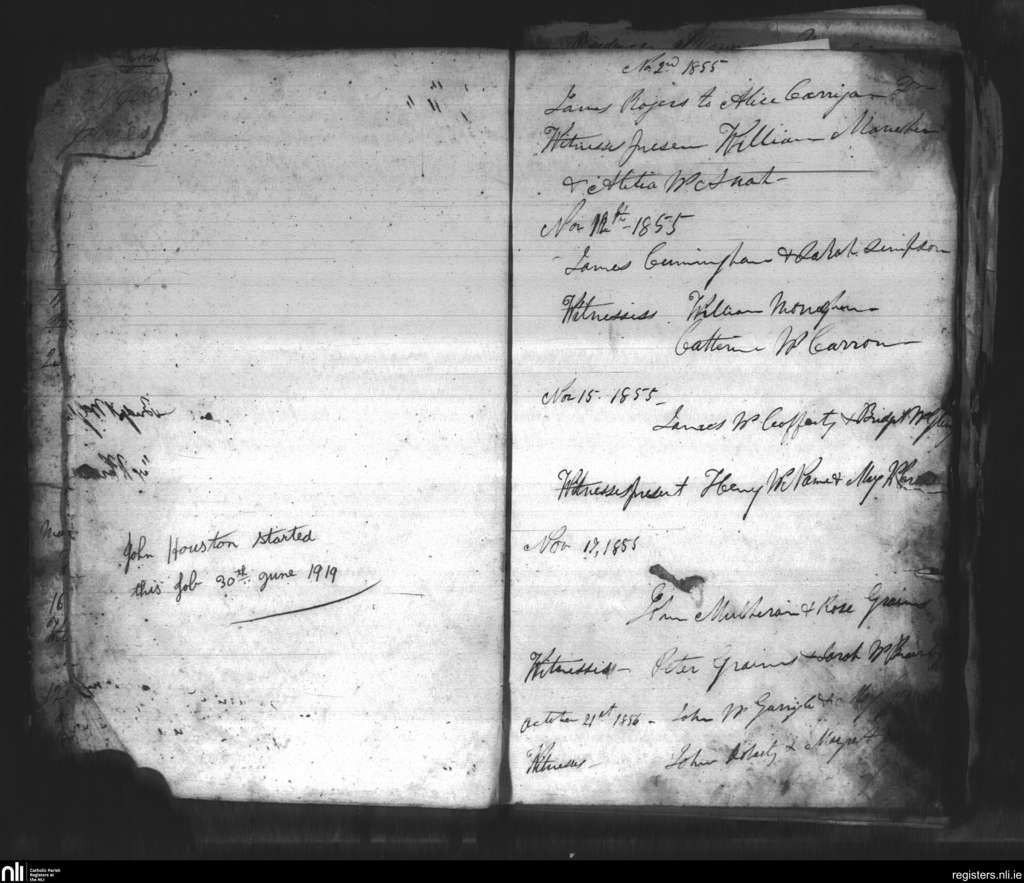 Clonleigh; County of Donegal, Tyrone; Diocese of Derry. Marriages, Nov. 1855 to Oct. 1856