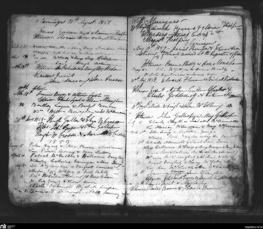 Clonleigh; County of Donegal, Tyrone; Diocese of Derry. Marriages, Aug. 1858 to Oct. 1859