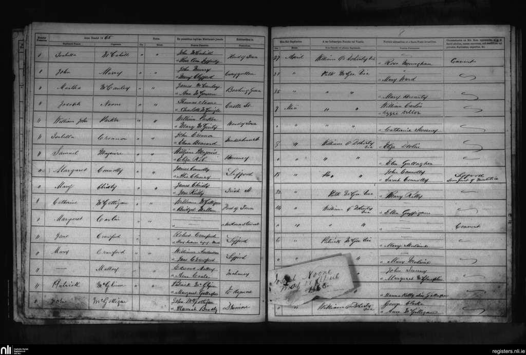 Clonleigh; County of Donegal, Tyrone; Diocese of Derry. Baptisms, Apr. 1865 to May 1865