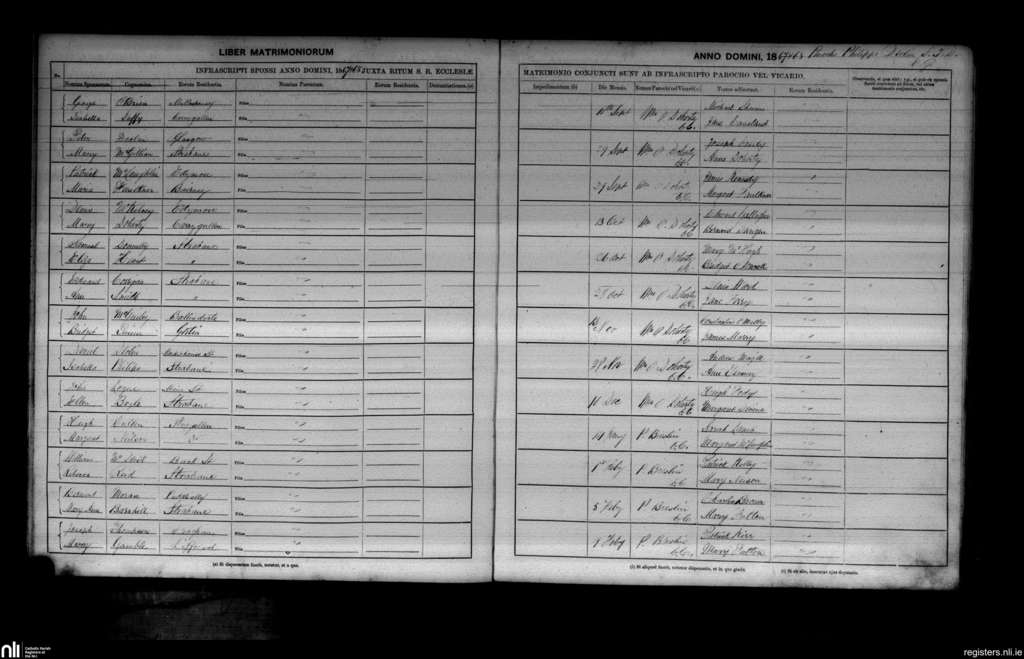 Clonleigh; County of Donegal, Tyrone; Diocese of Derry. Marriages, Sep. 1867 to Feb. 1868