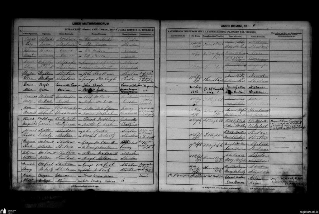 Clonleigh; County of Donegal, Tyrone; Diocese of Derry. Marriages, July 1875 to Nov. 1876
