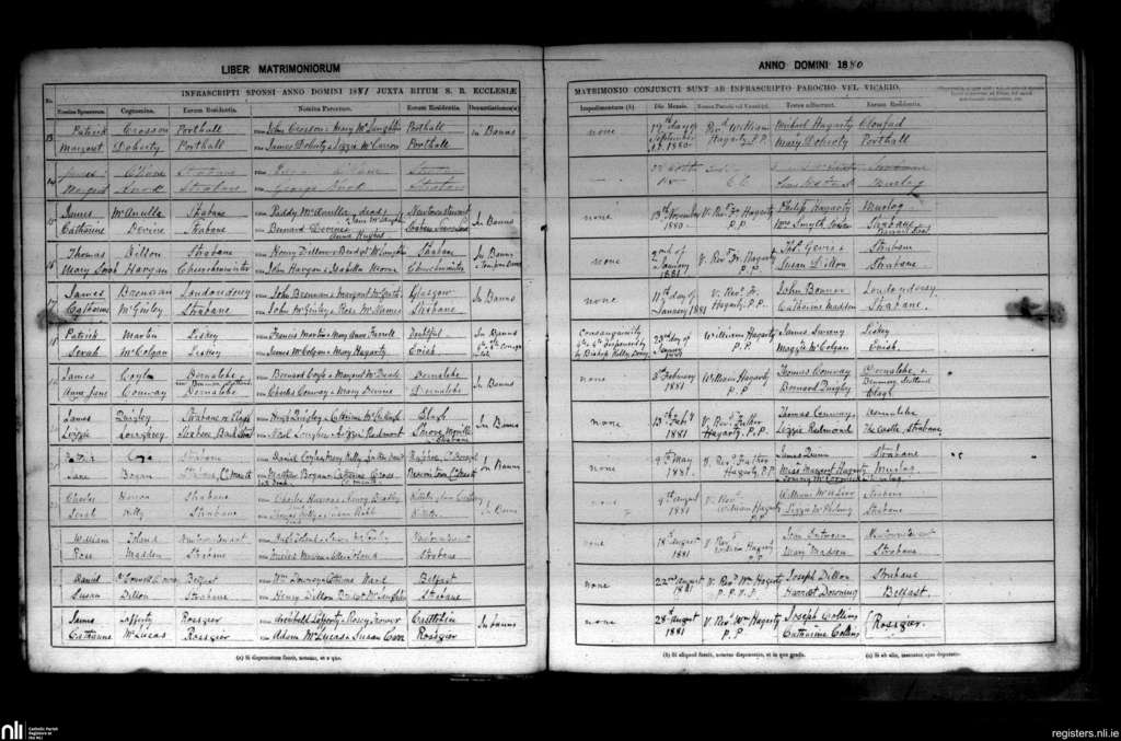 Clonleigh; County of Donegal, Tyrone; Diocese of Derry. Marriages, Sep. 1880 to Aug. 1881