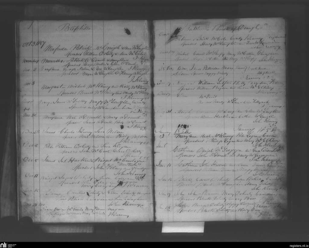Carndonagh; County of Donegal; Diocese of Derry. Baptisms, Oct. 1857 to Jan. 1858