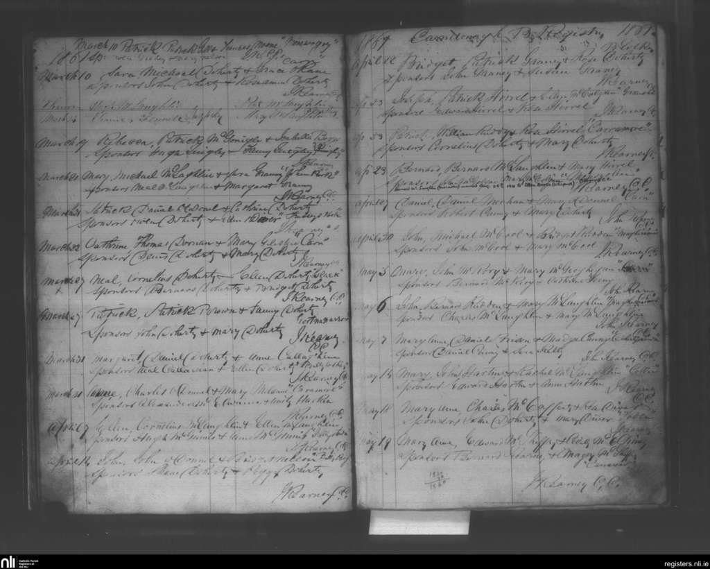 Carndonagh; County of Donegal; Diocese of Derry. Baptisms, Mar. 1861 to May 1861