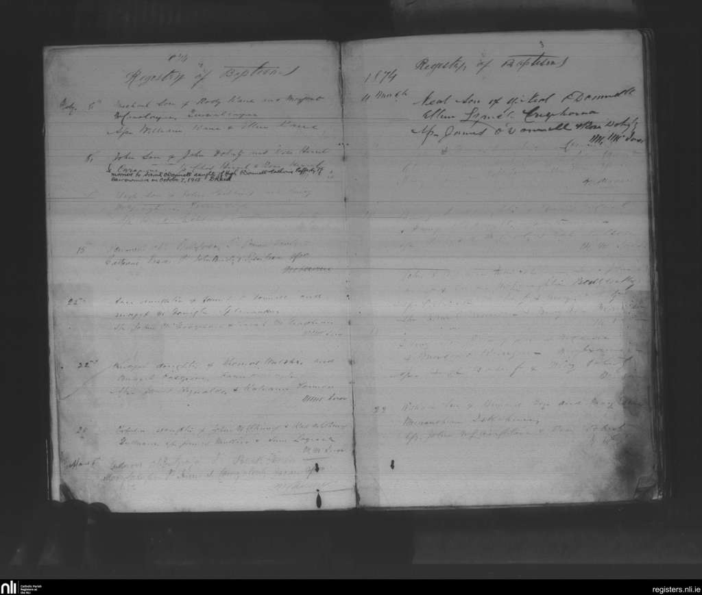 Carndonagh; County of Donegal; Diocese of Derry. Baptisms, Feb. 1874 to Mar. 1874