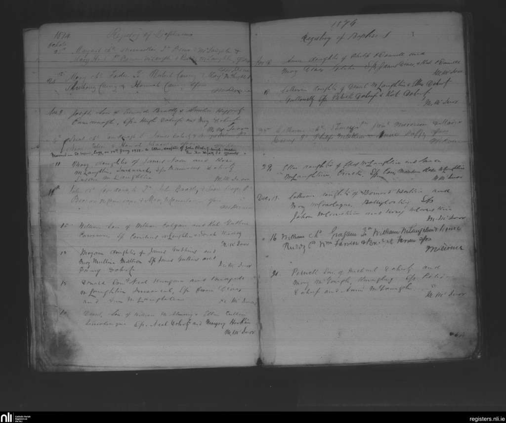 Carndonagh; County of Donegal; Diocese of Derry. Baptisms, Oct. 1874 to Dec. 1874