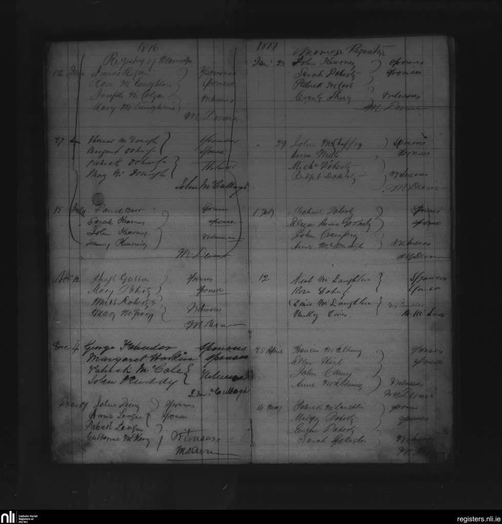 Carndonagh; County of Donegal; Diocese of Derry. Marriages, June 1876 to May 1877