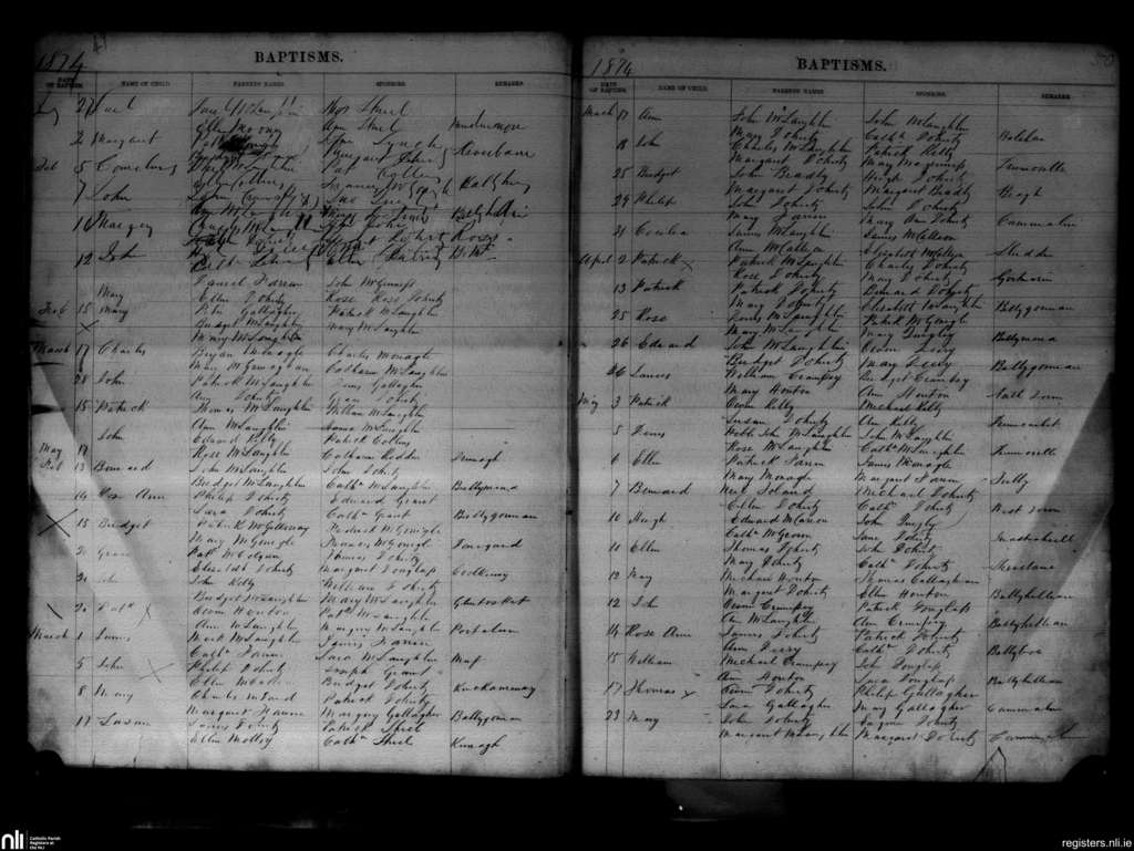 Clonca; County of Donegal; Diocese of Derry. Baptisms, Jan. 1874 to May 1874