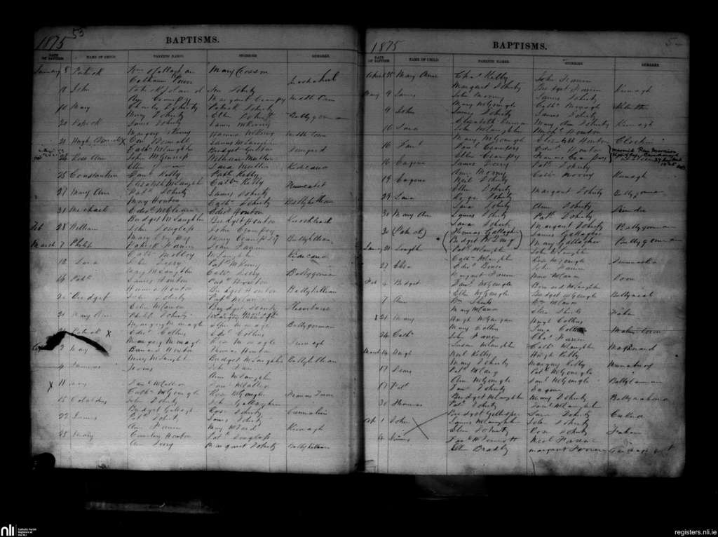 Clonca; County of Donegal; Diocese of Derry. Baptisms, Jan. 1874 to May 1874