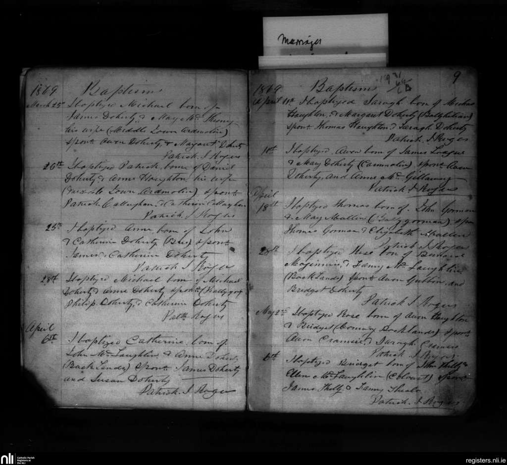 Clonca; County of Donegal; Diocese of Derry. Baptisms, Mar. 1869 to May 1869
