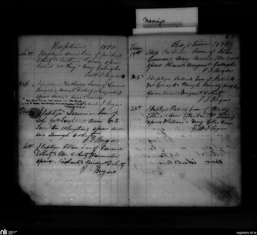Clonca; County of Donegal; Diocese of Derry. Baptisms, Nov. 1870 to Dec. 1870