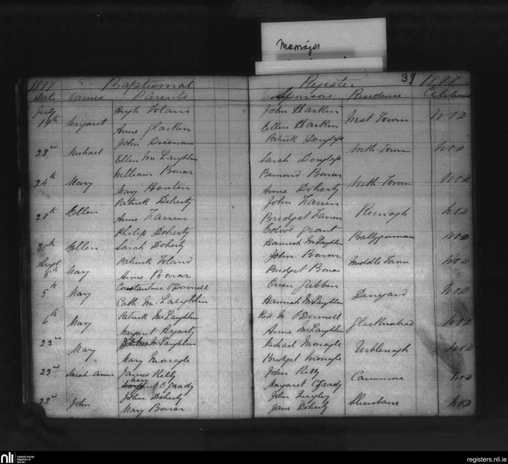 Clonca; County of Donegal; Diocese of Derry. Baptisms, July 1877 to Aug. 1877