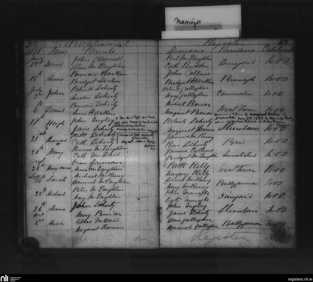 Clonca; County of Donegal; Diocese of Derry. Baptisms, June 1878 to Oct. 1878