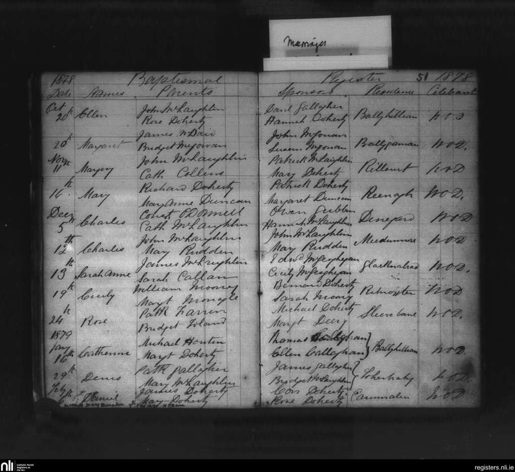 Clonca; County of Donegal; Diocese of Derry. Baptisms, Oct. 1878 to Feb. 1879