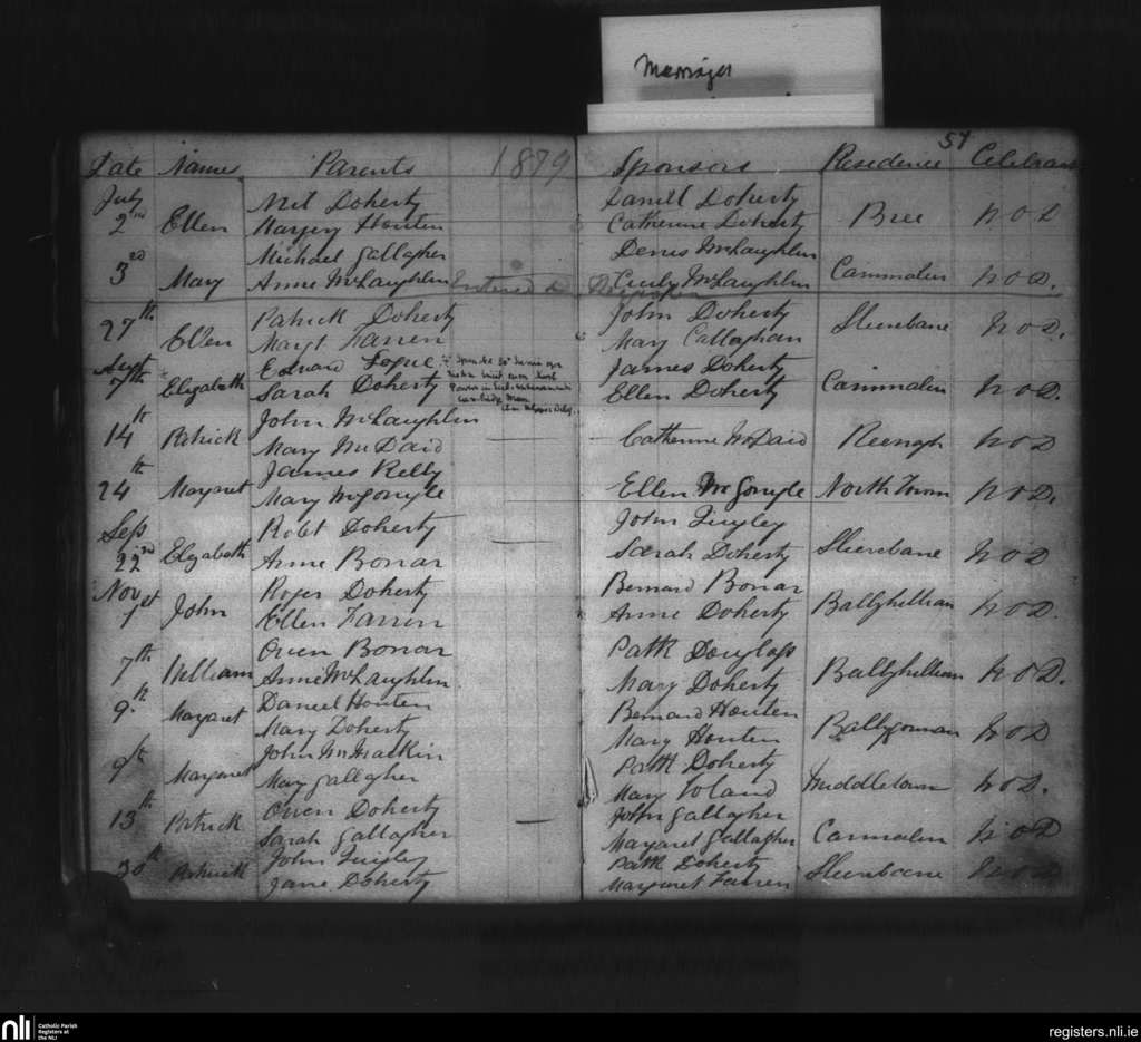 Clonca; County of Donegal; Diocese of Derry. Baptisms, July 1879 to Nov. 1879