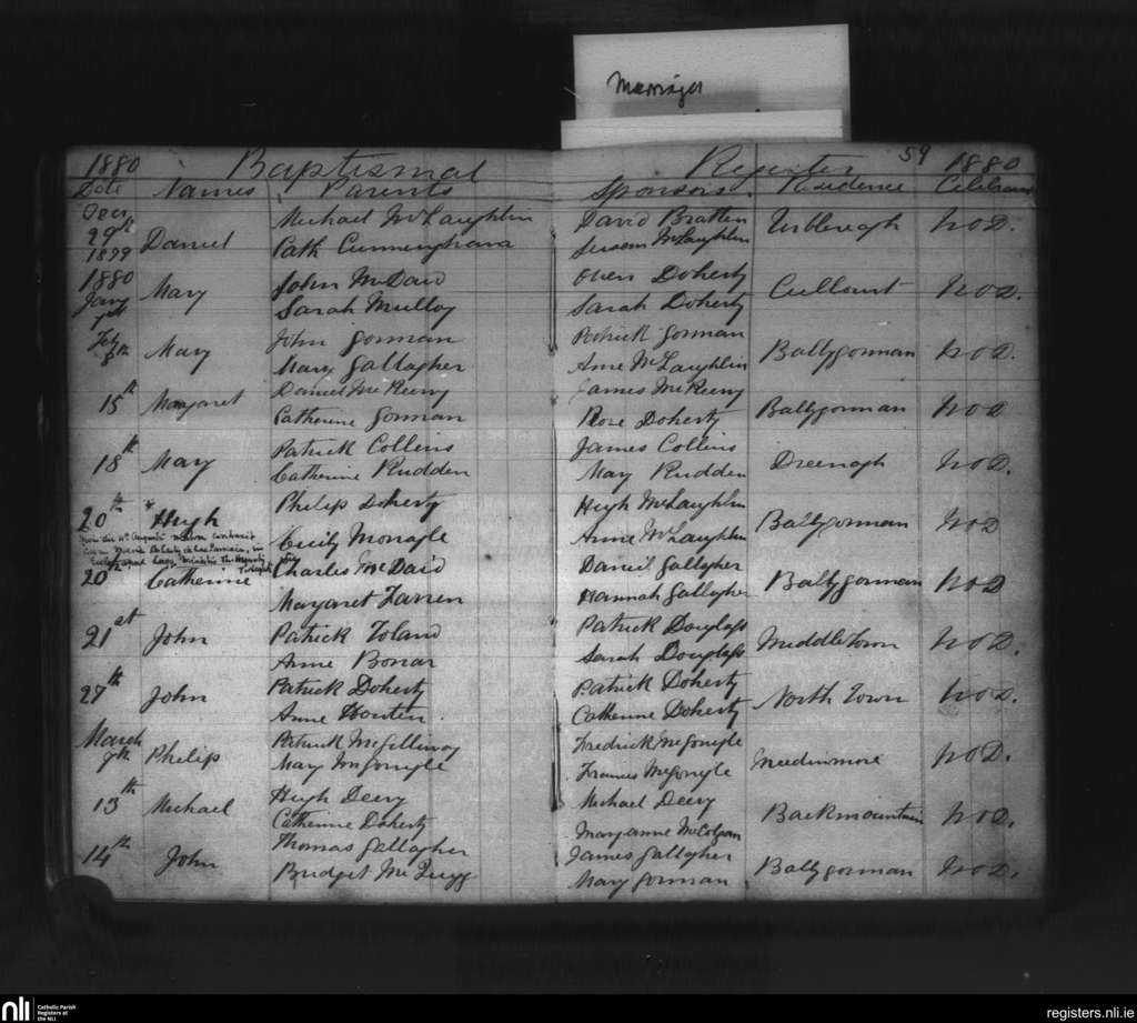 Clonca; County of Donegal; Diocese of Derry. Baptisms, Dec. 1879 to Mar. 1880