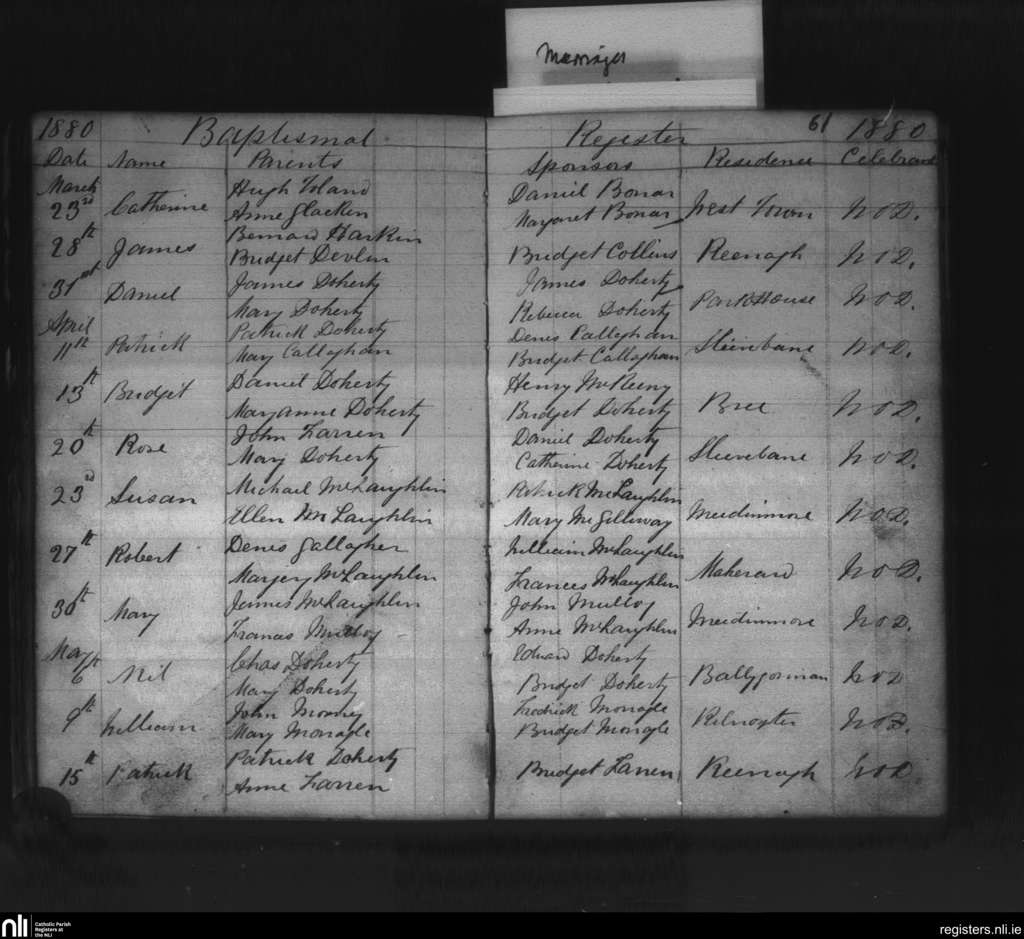Clonca; County of Donegal; Diocese of Derry. Baptisms, Mar. 1880 to May 1880
