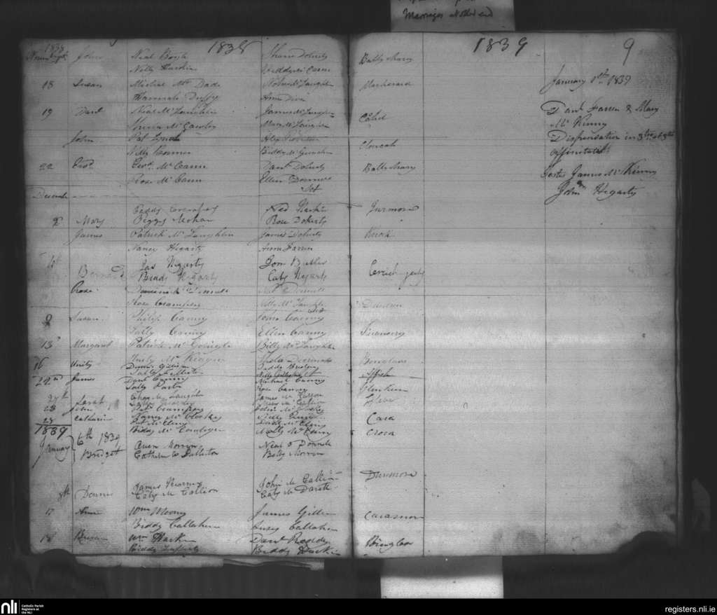 Culdaff; County of Donegal; Diocese of Derry. Baptisms, Nov. 1838 to Jan. 1839