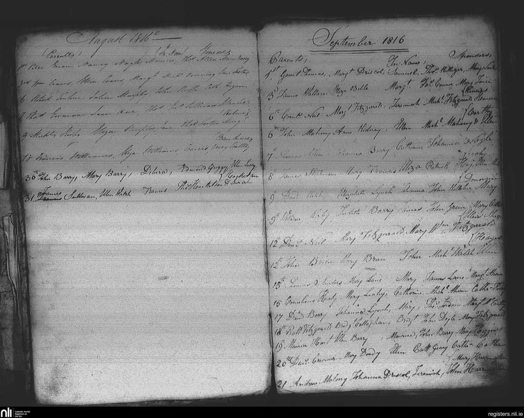 Cobh; County of Cork; Diocese of Cloyne. Baptisms, Aug. 1816 to Sep. 1816
