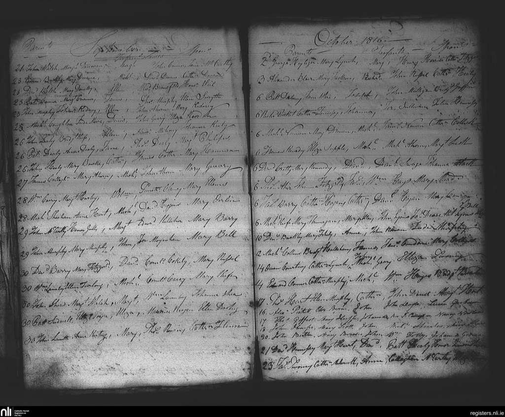 Cobh; County of Cork; Diocese of Cloyne. Baptisms, Sep. 1816 to Oct. 1816