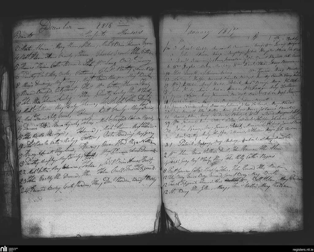 Cobh; County of Cork; Diocese of Cloyne. Baptisms, Dec. 1816 to Jan. 1817