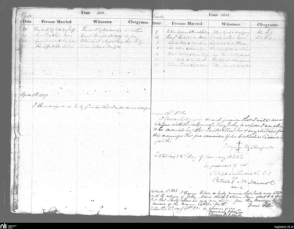 Cobh; County of Cork; Diocese of Cloyne. Marriages, Nov. 1812 to Apr. 1837
