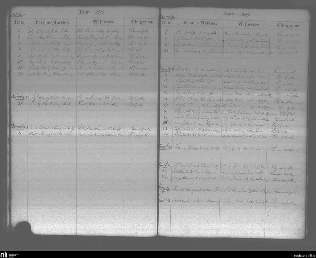 Cobh; County of Cork; Diocese of Cloyne. Marriages, Oct. 1818 to June 1819