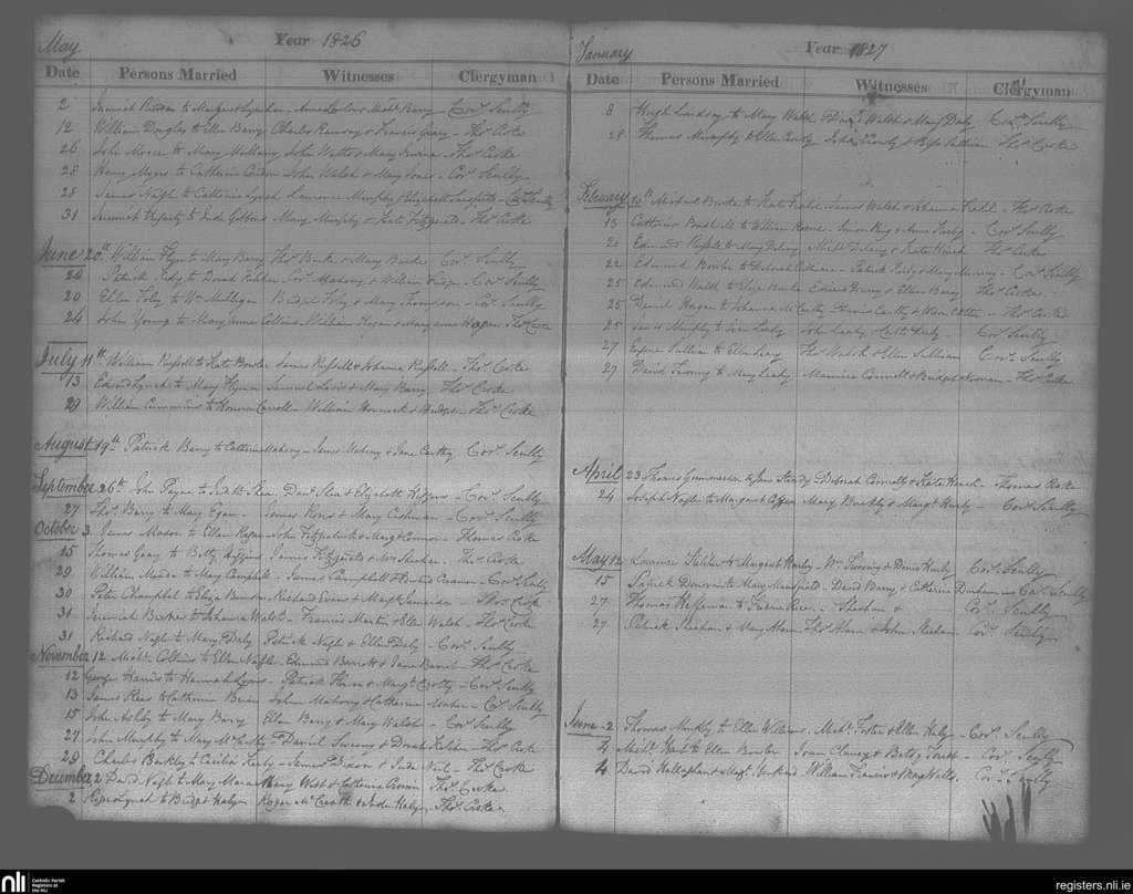 Cobh; County of Cork; Diocese of Cloyne. Marriages, May 1826 to June 1827