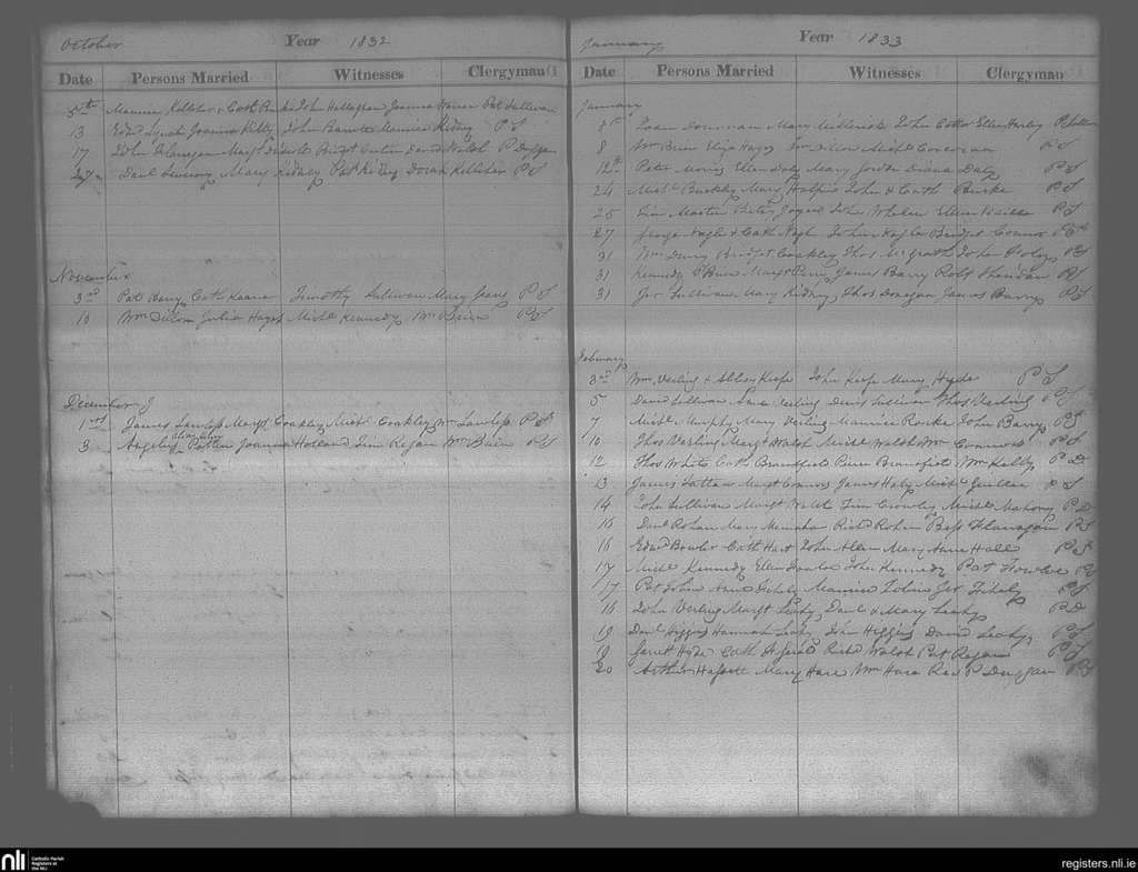 Cobh; County of Cork; Diocese of Cloyne. Marriages, Oct. 1832 to Feb. 1833