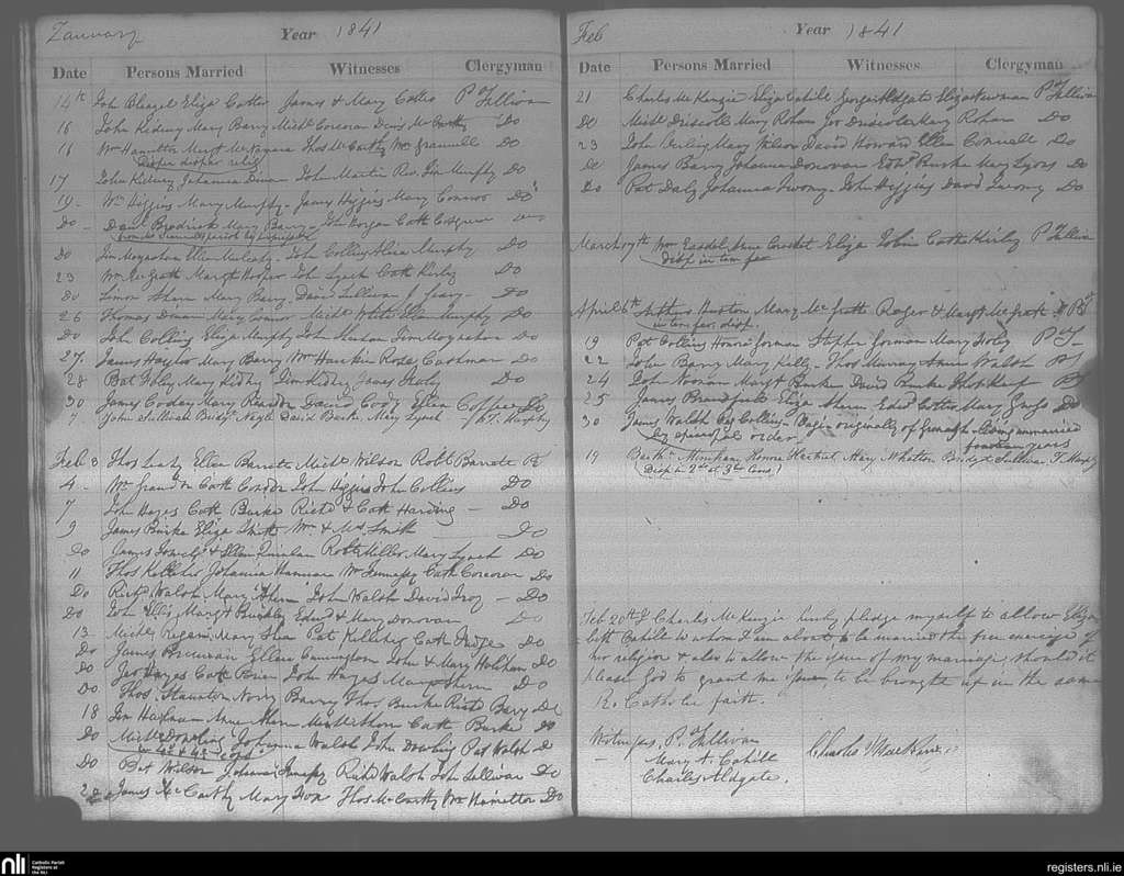 Cobh; County of Cork; Diocese of Cloyne. Marriages, Jan. 1841 to Apr. 1841