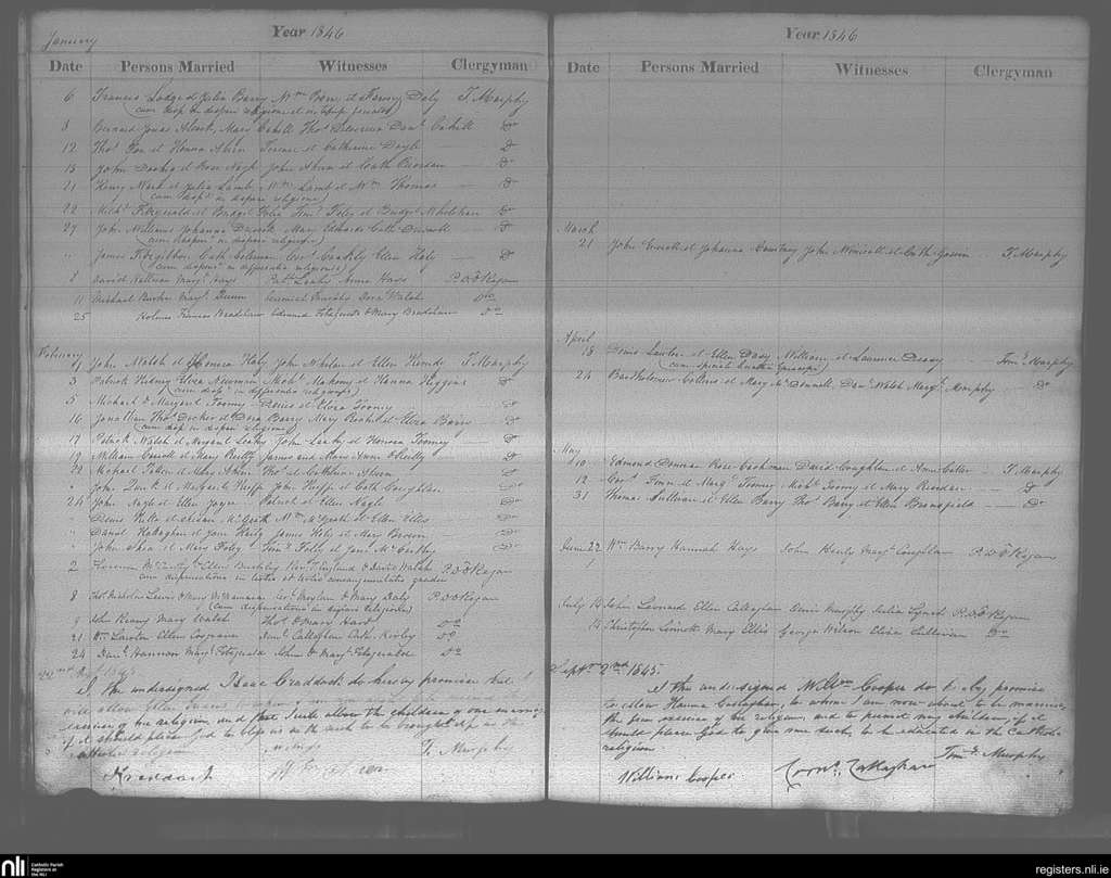 Cobh; County of Cork; Diocese of Cloyne. Marriages, Aug. 1845 to July 1846