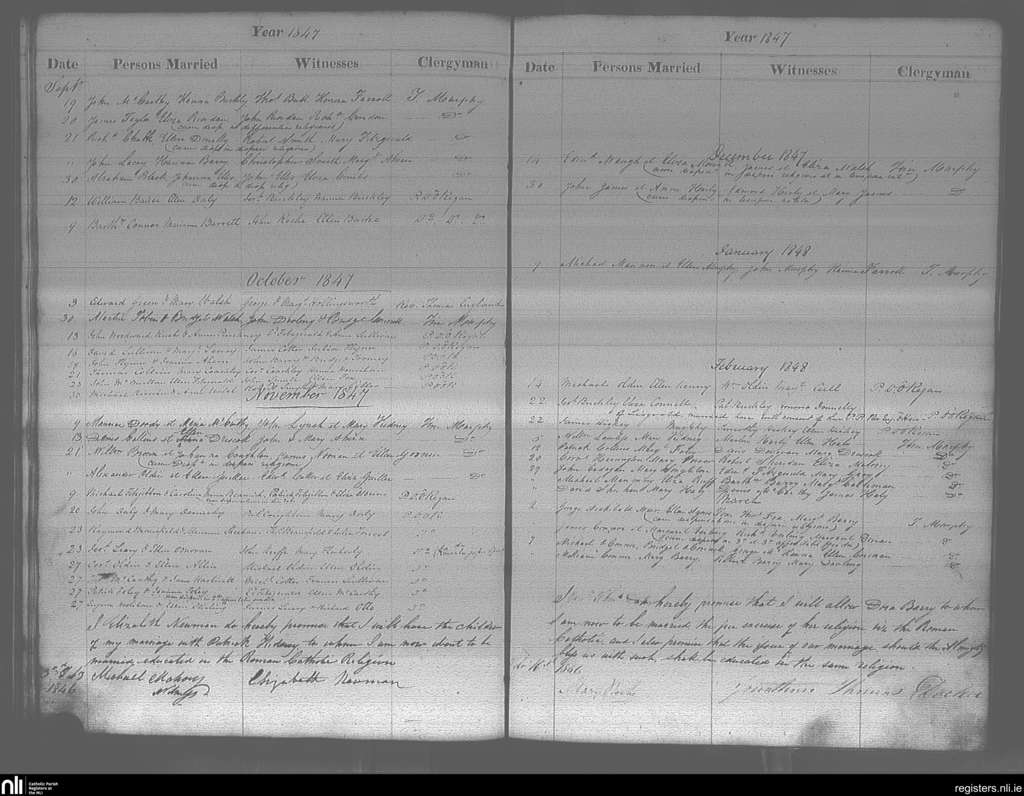 Cobh; County of Cork; Diocese of Cloyne. Marriages, Feb. 1846 to Mar. 1848