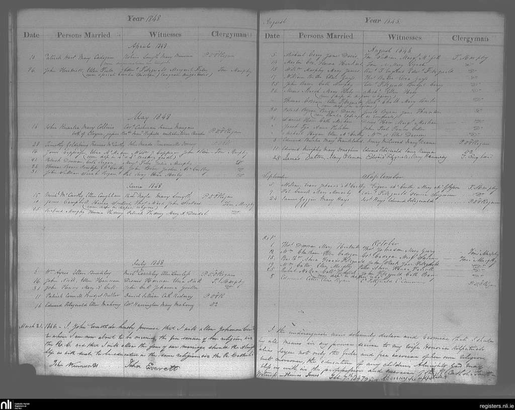 Cobh; County of Cork; Diocese of Cloyne. Marriages, Mar. 1846 to Oct. 1848