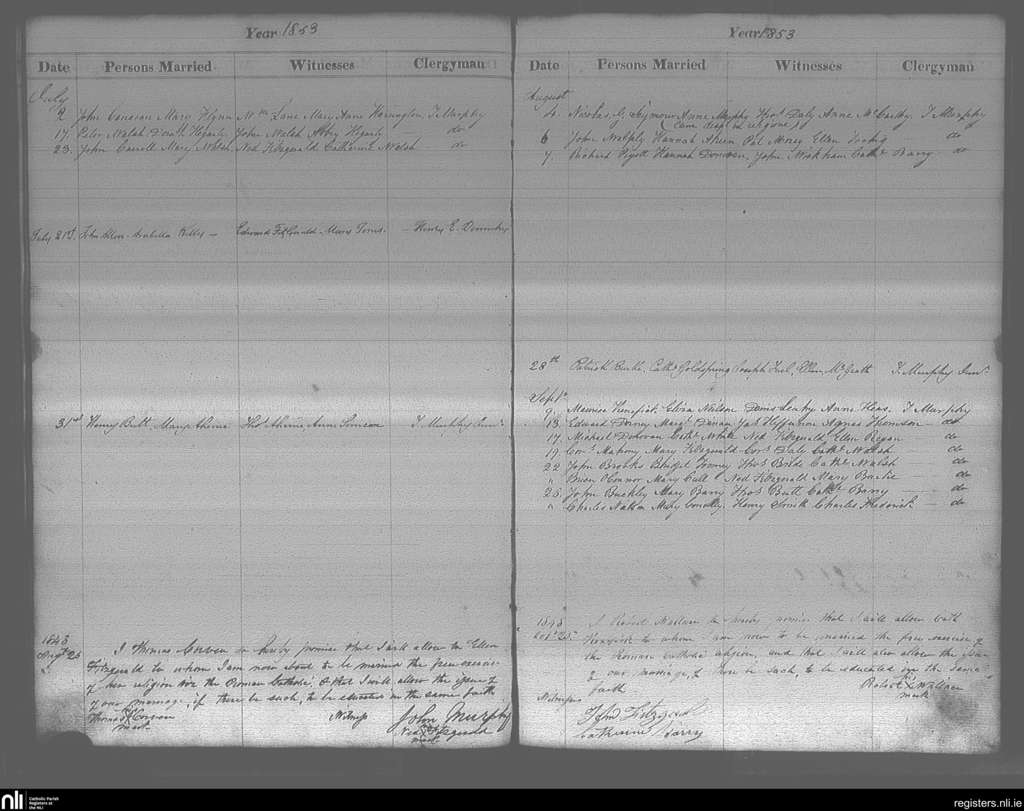 Cobh; County of Cork; Diocese of Cloyne. Marriages, Aug. 1848 to Sep. 1853
