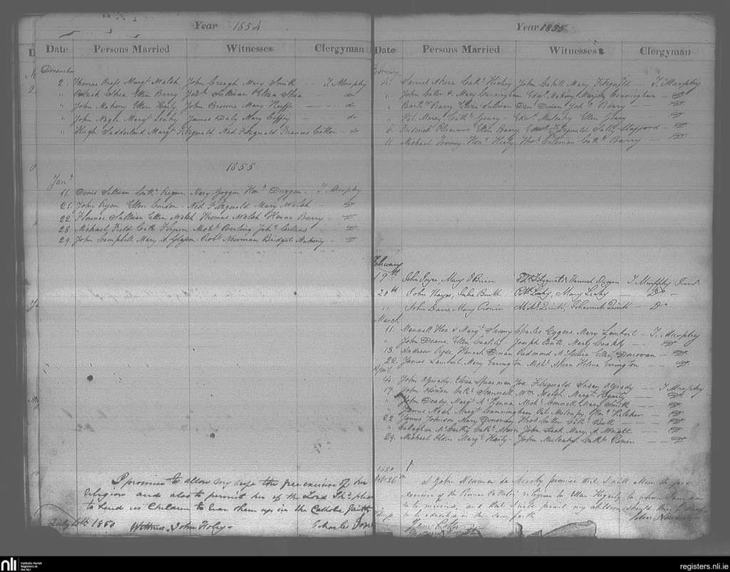 Cobh; County of Cork; Diocese of Cloyne. Marriages, July 1850 to Apr. 1855