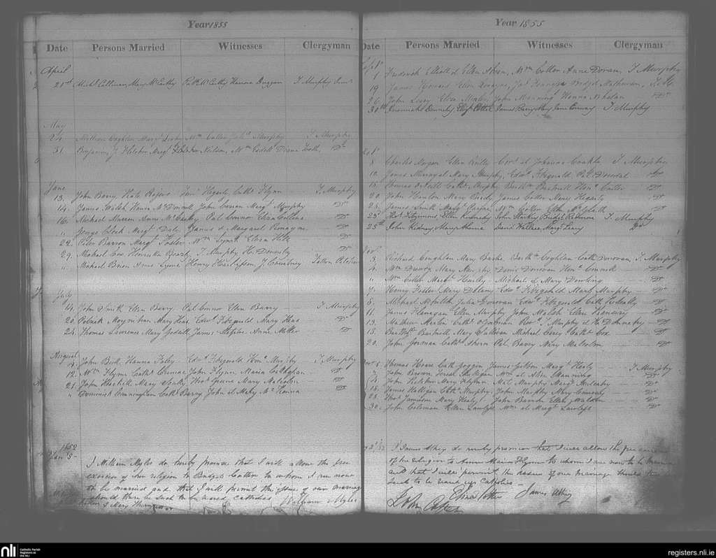 Cobh; County of Cork; Diocese of Cloyne. Marriages, Jan. 1852 to Dec. 1855