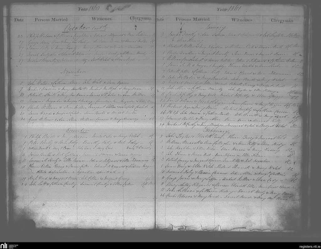 Cobh; County of Cork; Diocese of Cloyne. Marriages, Oct. 1860 to Feb. 1861