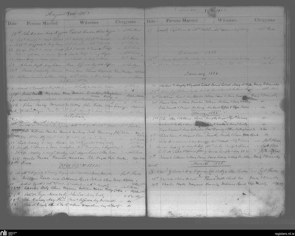 Cobh; County of Cork; Diocese of Cloyne. Marriages, Aug. 1863 to Mar. 1864