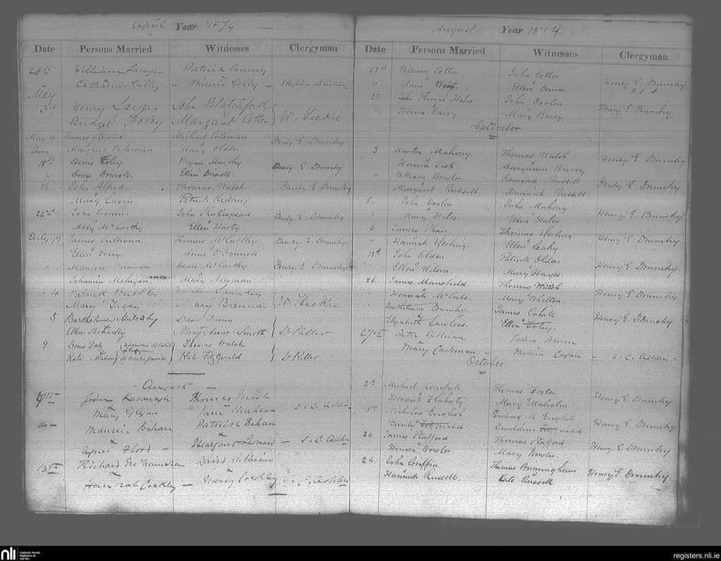 Cobh; County of Cork; Diocese of Cloyne. Marriages, Apr. 1874 to Oct. 1874