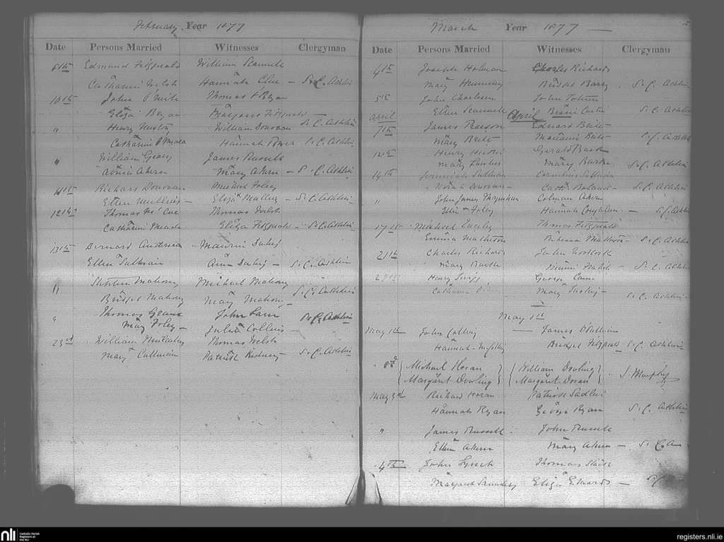 Cobh; County of Cork; Diocese of Cloyne. Marriages, Feb. 1877 to May 1877