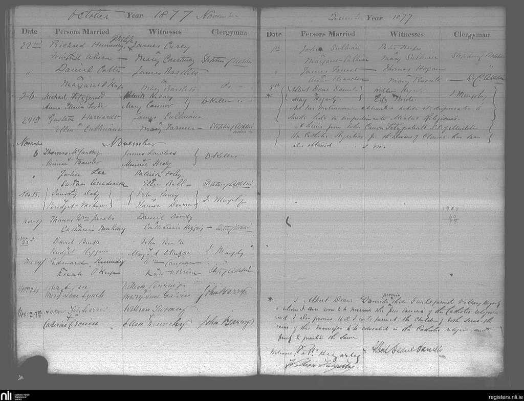 Cobh; County of Cork; Diocese of Cloyne. Marriages, Oct. 1877 to Dec. 1877