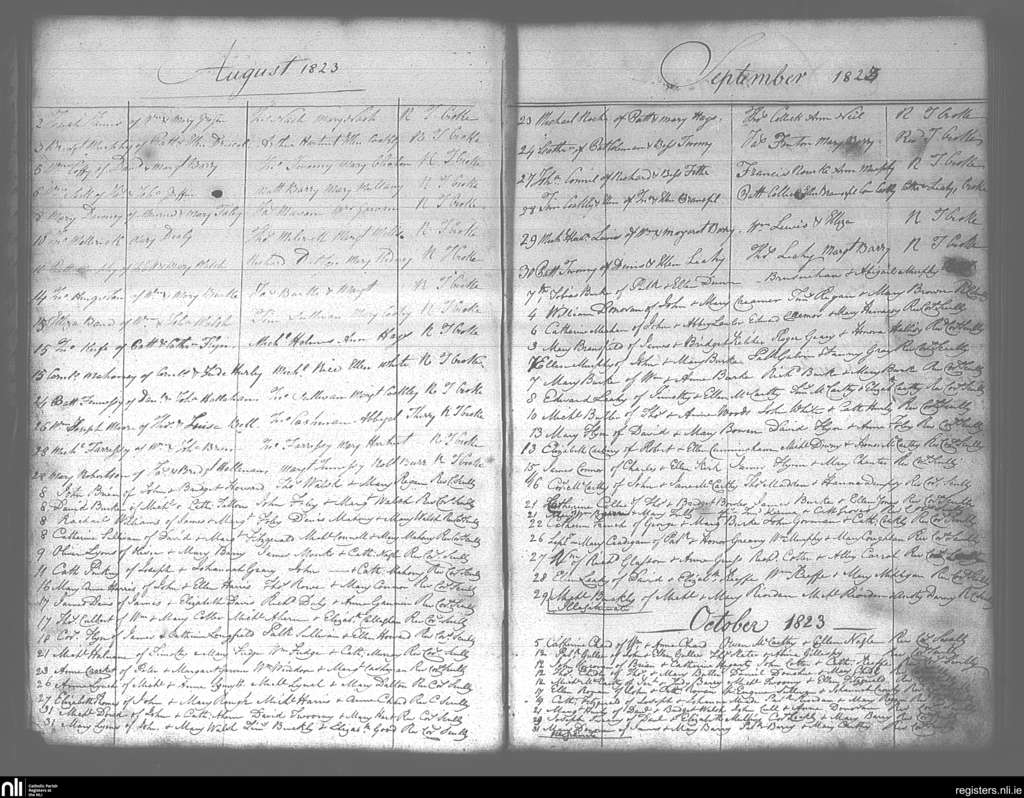 Cobh; County of Cork; Diocese of Cloyne. Baptisms, Aug. 1823 to Oct. 1823