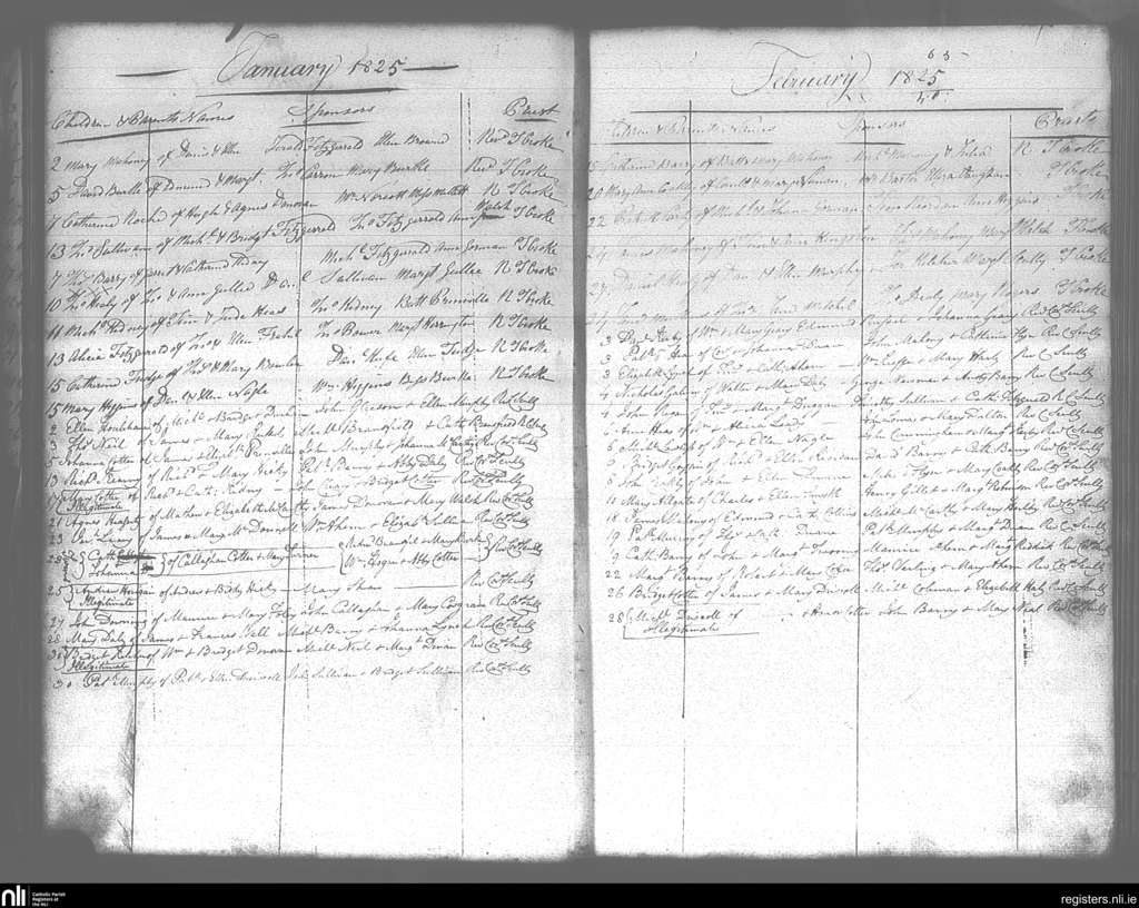 Cobh; County of Cork; Diocese of Cloyne. Baptisms, Jan. 1825 to Feb. 1825