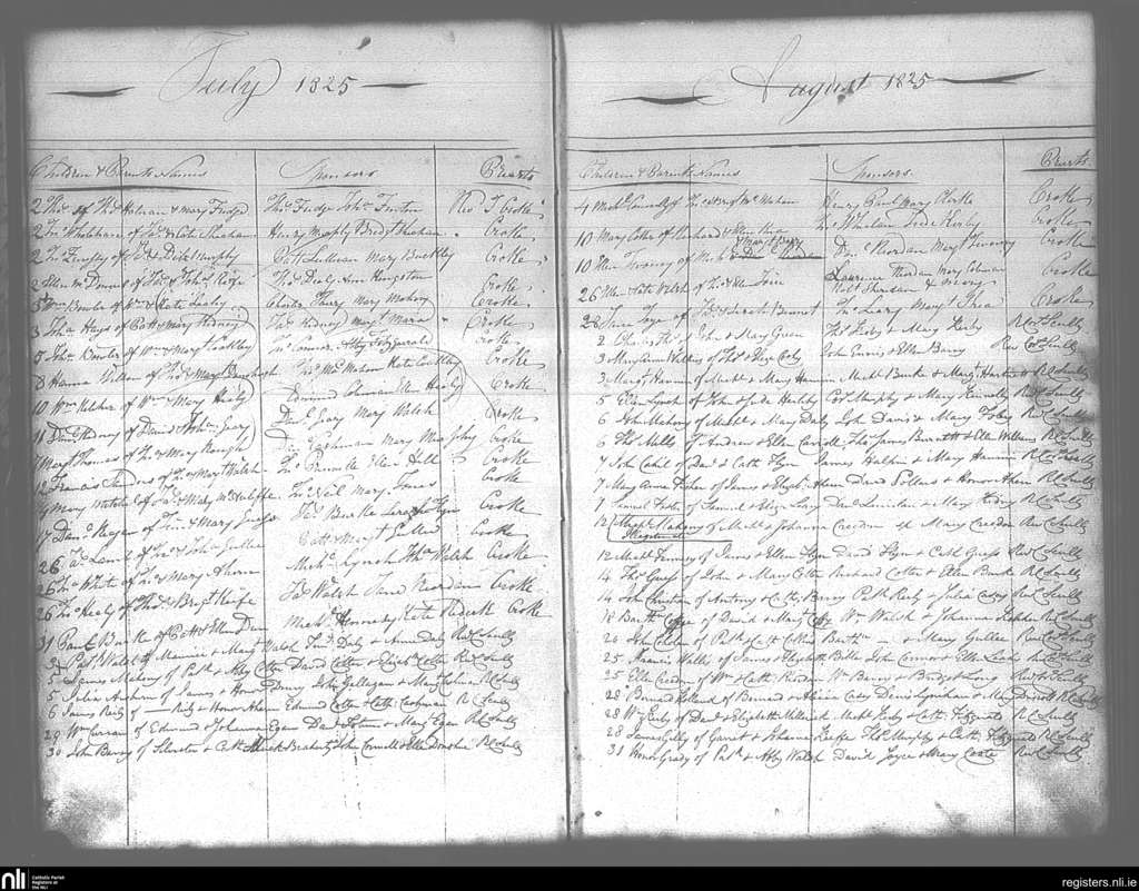 Cobh; County of Cork; Diocese of Cloyne. Baptisms, July 1825 to Aug. 1825